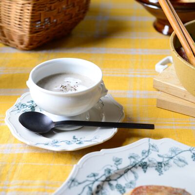 光沢のないマットな質感が特徴的な、15年以上販売し続けている黒色のカトラリー。フリシティとは、フランス語で食事を意味します。フリシティの特徴でもある黒色は、塗装ではなくて、光の反射で黒く見えるようにしています。新品は光沢のないマットな質感の黒色ですが、使い続けると、表面がなめらかになり、少しずつ光沢感が出て、鈍いグレー色になったりと変化が楽しめます。