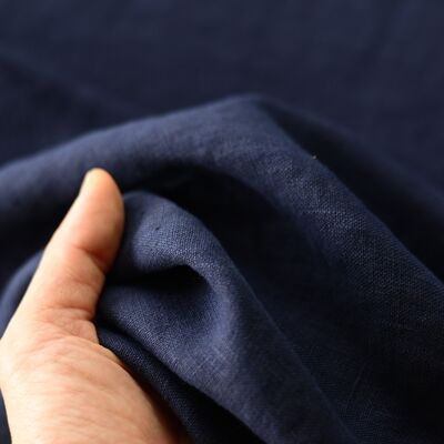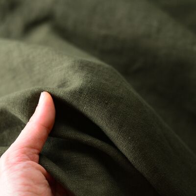 エジプト産リネン混の糸を30%使用しているため糸の太さが均一ではなく、所々に太い部分がある糸で織られた生地はタテにもヨコにもスラブが入るため、生地の風合いに粗野感、ヴィンテージ感が生まれます。また縦と横の織りが細かく、丈夫な生地です。