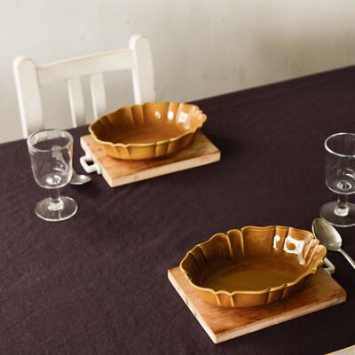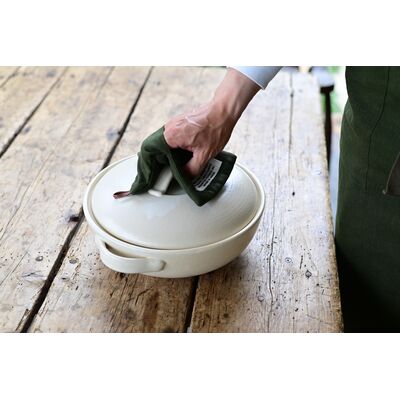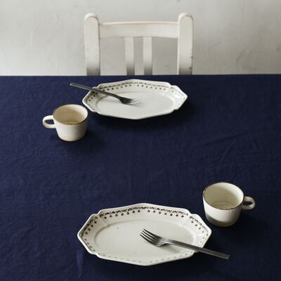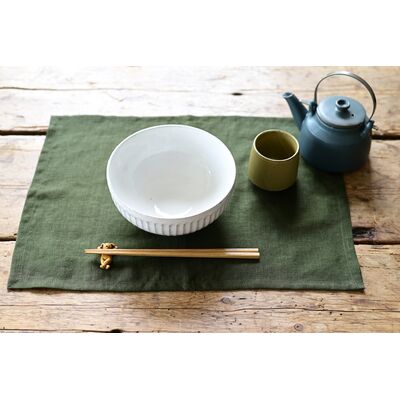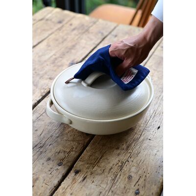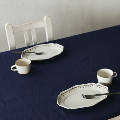 インディゴ、カーキ、ボルドーの3色展開で、カーキは深みのある洗練された雰囲気、ボルドーは少し青みの入った落ち着いた染め上がり、インディゴは濃く染めた藍染め付けのようなイメージで、和テイストの器との相性が良いです。
