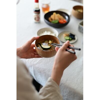 栗の木を一つひとつ丁寧にくり抜き、幾度も研磨を重ねて滑らかに仕上げた木のボウルです。手にした瞬間に感じるやわらかな質感と軽やかさが魅力で、熱が伝わりにくいため、あたたかい汁物にも安心してお使いいただけます。使うほどに木目が深みを増し、味わいが育っていくのも楽しみのひとつです。