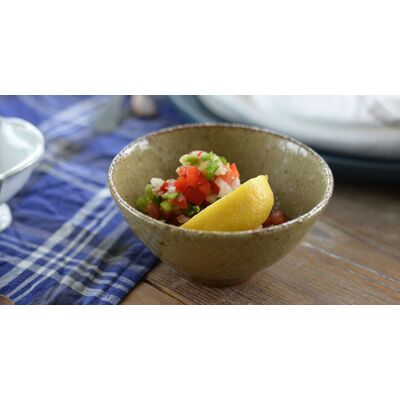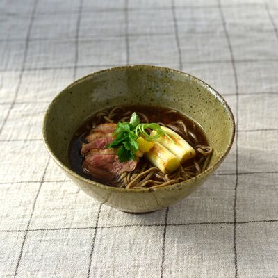 スーチョンタンとは、パクチーをたっぷりとのせたベトナムの麺料理のことです。艶のある黒色と灰汁色は食材の色味を引き立ててくれるので、名前の由来からも、青々とした野菜を使ったエスニック料理に合います。和食・洋食を盛り付けても不思議と馴染む汎用性の広さも魅力のひとつです。荒土の表情豊かな風合いに粒々とした土の手触りが心地よく、陶器素材では珍しい軽やかさと薄さがバランスの良いシリーズ。