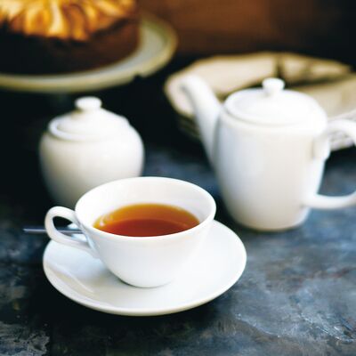 スマートなフォルムと特徴のあるハンドル、全体的にプレーンな印象ながらこだわりのあるカップ&ソーサーです。強度的にも問題なく、適度でしっかりとした重量感も心地よい飽きの来ない形状は、フォーマルでもカジュアルでも合わせられ、デイリーユーズに適しています。コーヒー、ティー、オーレからなり、特にオーレはたっぷり入るサイズ。ソーサーがそれぞれ兼用でまかなえるので便利です。