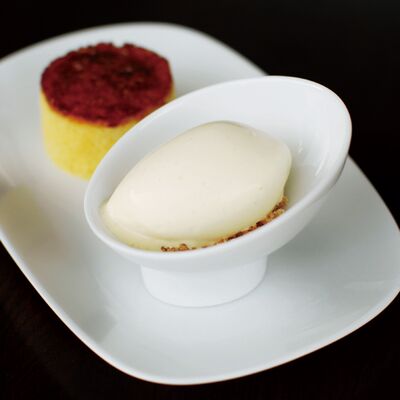 食べ物を休ませるというコンセプトで、ソファをモチーフにしたボウル。高く仕上げられた高台により、料理を象徴的に演出し、斜めに傾いたボウルは料理を覗き込むような感覚になります。