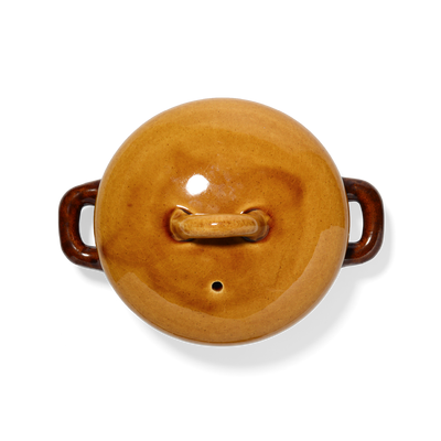 マレンゴはナポレオンの好物の煮込み料理のこと。食料の少ない戦地で料理人が材料をかき集めて作った料理です。小振りな鍋は1人用として、煮込みうどんなどにちょうどよいサイズ。直火で調理したものをそのまま食卓で器として使ってもいいですね。マットな茶色の蓋にツヤ感のあるクリーム色の身は内側はマットなクリーム色、つやのある明るいキャラメル色の蓋とマットな茶色の身と上下の色の違いが可愛らしい鍋です。
