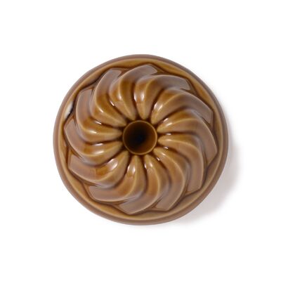 フランスの東北部、アルザス地方の伝統菓子クグロフの型。 斜めにうねりのある形が特徴的。陶製なので金型よりも熱がゆっくりと伝わるので、中がふんわりと焼き上がります。本来のクグロフはもちろん、パウンドケーキやババロアやテリーヌなどいろいろな料理に応用してみて。