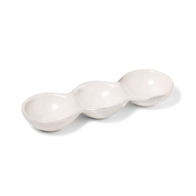 食卓のアクセントになるグース。「豆」という意味の名前のとおり、まさに豆のサヤのよう。ドゥーブやアルバートなど土鍋まわりのアイテムに合うようにデザインされ、手作り感のある形状や釉薬による風合いが楽しめる器です。鍋料理、お茶漬け、麺類などの薬味、小付やジャムなど様々なシーンで活躍します。