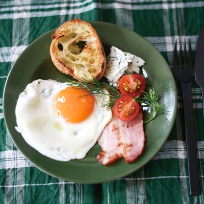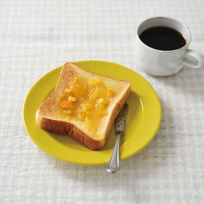[食卓を彩るオリーブとレモン色] 懐かしさを感じる深い緑と明るい鮮やかな黄色が魅力的なレコルテシリーズ。フランス語で「収穫する」という意味のレコルテは、太陽が燦々と降り注ぐ日に採れたての野菜をシンプルな料理で楽しむシーンを思い浮かべながら企画した商品。鮮やかなレモン色と深いオリーブ色が、どこか外国の食器を思わせる。朝食のコーヒーにプレートと一緒に。