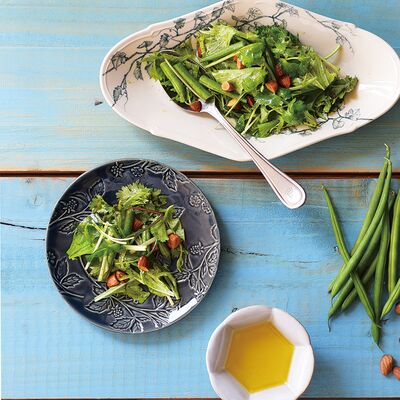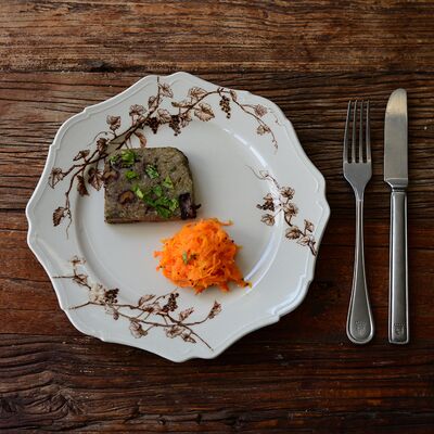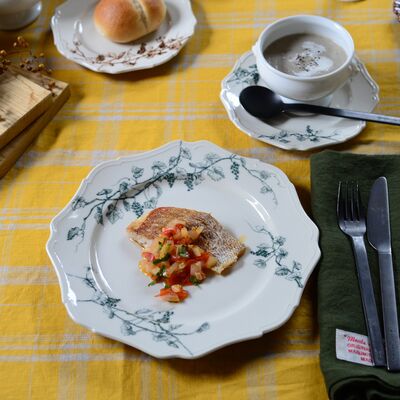 ヴィーニュ/Vigneは、フランス語で「ぶどう」という意味。ヨーロッパの絵皿にあるアンティークプレートからイメージを膨らませ、葡萄の枝や果実、蔓などを大胆に配置したシリーズです。