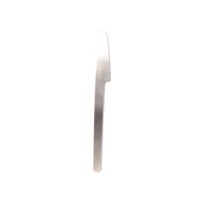 直線的でフラットなフォルムが特徴的なカトラリー。表面は一方向に細い線状の傷を付ける表面加工によりツヤのないマットな仕上がりで、キズなども目立ちにくくなっています。洋食器だけでなく、和食器に合わせても馴染むデザイン。食事からおやつの時間まで、毎日使いたいカトラリーです。
