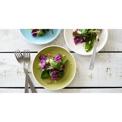 "Francisco" tableware series is associated with the west coast in US. The inner circular line is so exquisite that you can nicely dish up both along the line and across the line up to almost the edge. Why don't you build up a collection of "Francisco" series: there are four types of plates, three types of bowls and a set of cups/saucers/teapots all in five colors? Moreover, you could also use them along with "Budino" bowls or "Pieno" bowls that have the same colors as "Francisco" series.