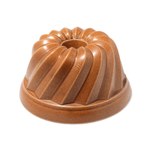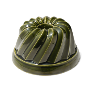 フランスの東北部、アルザス地方の伝統菓子クグロフの型。 斜めにうねりのある形が特徴的。陶製なので金型よりも熱がゆっくりと伝わるので、中がふんわりと焼き上がります。本来のクグロフはもちろん、パウンドケーキやババロアやテリーヌなどいろいろな料理に応用してみて。