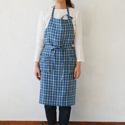 ザクセンブルーチェック スタンダードエプロン ガセット