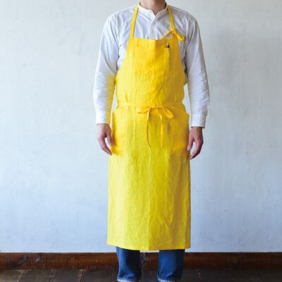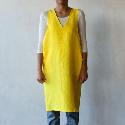 ルス(イエロー) Vネックプルオーバーエプロン ロング