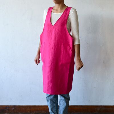 ルス(ピンク) Vネックプルオーバーエプロン ロング