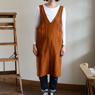 ペイザンヌ Vネックプルオーバーエプロン ロング(ブラウン)