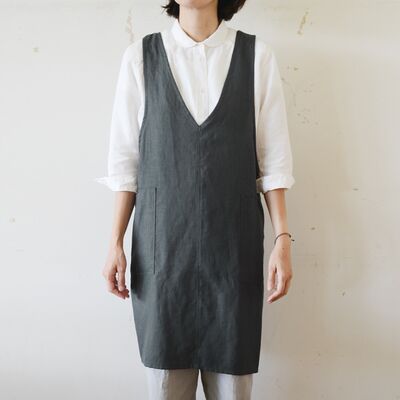 ヘリンボン♯40(チャコールグレー)Vネックプルオーバーエプロン