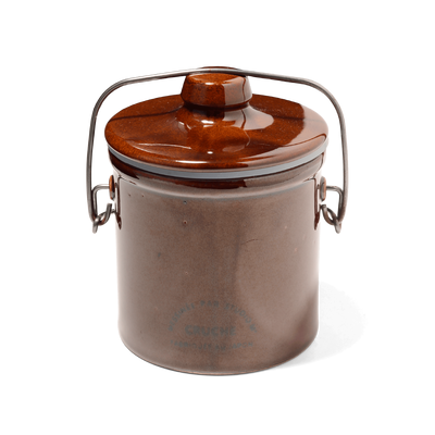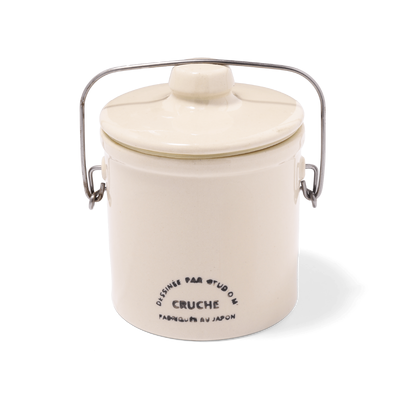 "Cruche" kitchen tool series features rustic color hues and letters on stamps with antique vibes. By making use of the stoneware clay that becomes slightly beige, the overall appearance can represent warmth and nostalgia. It looks as if it had been there in your kitchen for a long period of time.