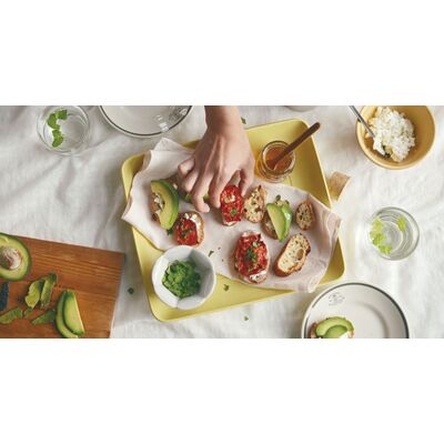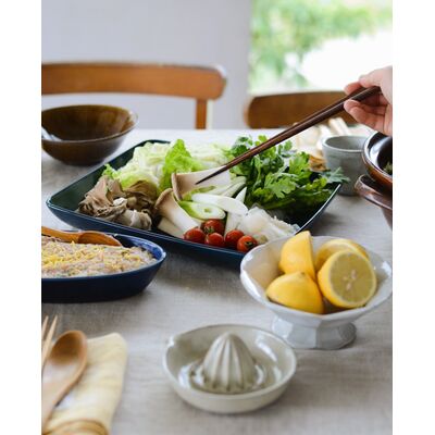 When it comes to the "Kokuto Ishime" line, the feeling of rough earthen clay is mesmerizing! However, it has a smooth finish to some extent. Picturesque food presentations are possible regardless of the food to be dished up, whether it is Japanese cuisine or western, whether a main dish or dessert. With four short feet, it is easy to pick up, hold and serve. How about arranging seafood "carpaccio" or Japanese confectionery on [26 round plate]? Then, the table will absolutely look stylish and elegant.