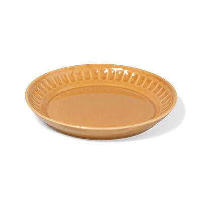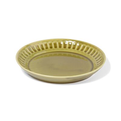 ボウル・ココットのデザインと揃えた、スタジオエムらしい定番の取皿がほしいとお客様からご要望があり商品化されたプレート。30周年を機にボウルとココットに合わせて、色と裏印を大人っぽくデザイン変更させました。