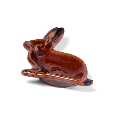 A small decorative plate, called Lapin (rabbit in French) to bring some luck to the table. This realistic and charming rabbit is the result of a specially designed mold where the rabbit's coat was carved one by one. The accumulation of semi-transparent glaze creates shades of color and the illusion of coat. As a finishing touch, eyes, tail, and ears are hand-painted. Serve jam, nuts or chocolate in it to make a lovely and humorous table.