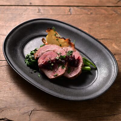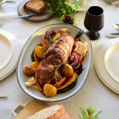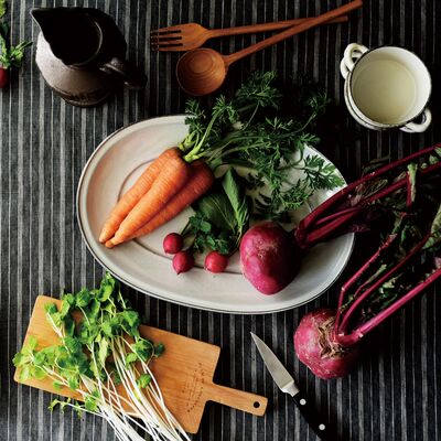 "Mariniere" in French is associated with seafood in white wine and onion sauce. Imagine chopping fresh ingredients into large pieces and just use simple seasonings. It will be really appetizing for you to look at those wild dishes that are served bigheartedly. By using black earthen clay, monotonous colors are made to become deep and atmospheric. Due to its clear and strong edges, thinly glazed edges make the black base clay seen through, and as a result, the overall appearance becomes tightened. This oval plate has enough depth, so you can serve moist or soupy food easily.