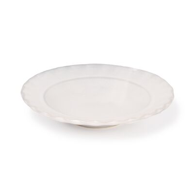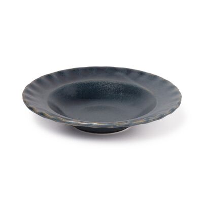 Available in 2 new colors - white and indigo. Glaze along the intricate shape of the rim changes hue tones from light to dark and gives distinct taste to its color and texture. White color becomes grayish around the rim. Indigo leaves burn-like marks around the rim and color may turn matte. Gathering of the glaze turns to glossy deep indigo color. Supra changes its impression every time you use it to add spice to your table everyday.