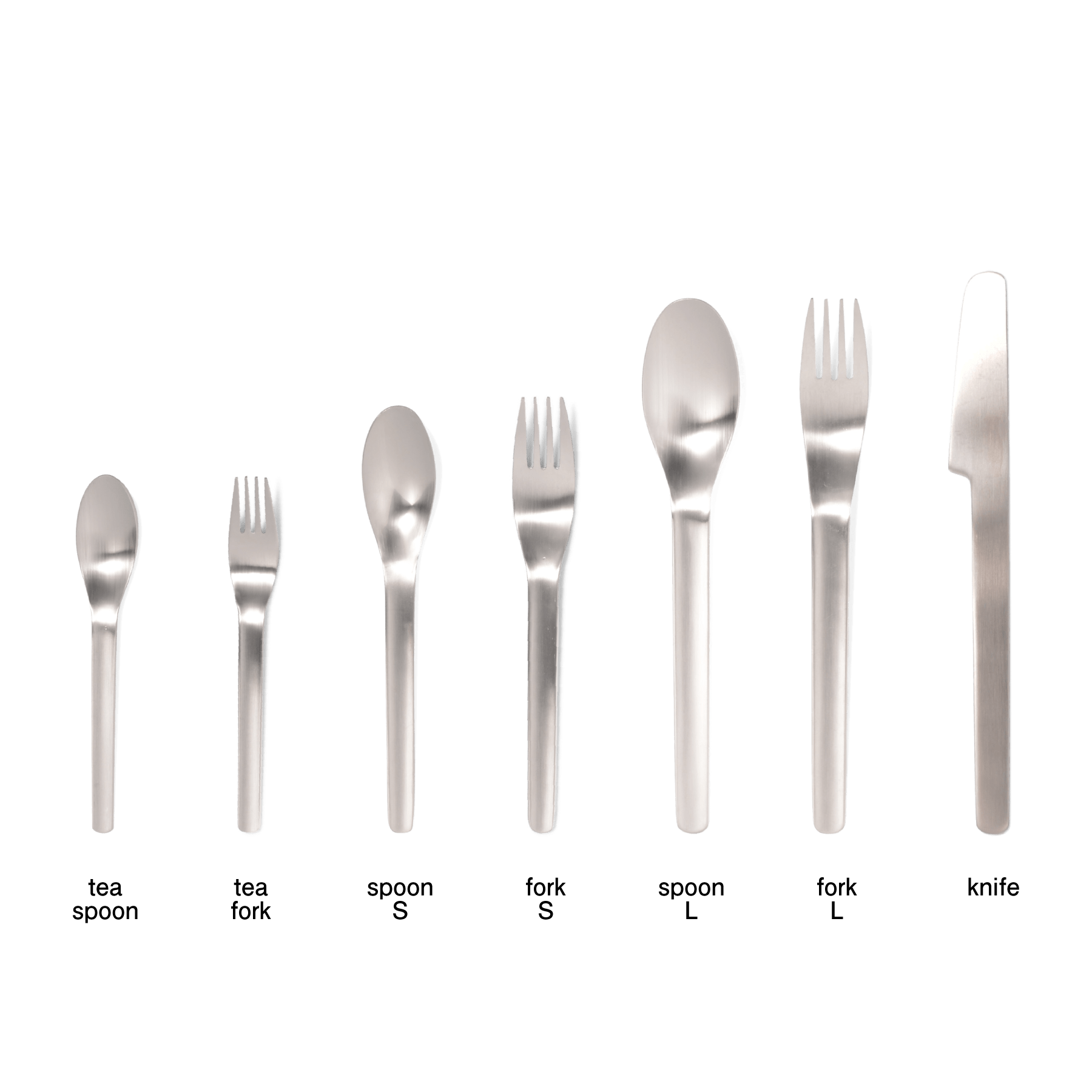 "Buffet" cutlery series is characterized by a flat and straight form. The narrower fork head is not only compact but also useful for eating food smoothly. Matte finish (giving fine linear scratches to the surface in the same direction) is done, so flaws are less likely to be conspicuous. The design is suited for both western and Japanese style tableware items. Enjoy using "Buffet" cutlery items for meals and refreshment breaks on a daily basis. Fork S is not so big and not so small, so it is recommended as a table fork for kids and as a a dessert fork for adults to eat cake and fruit.