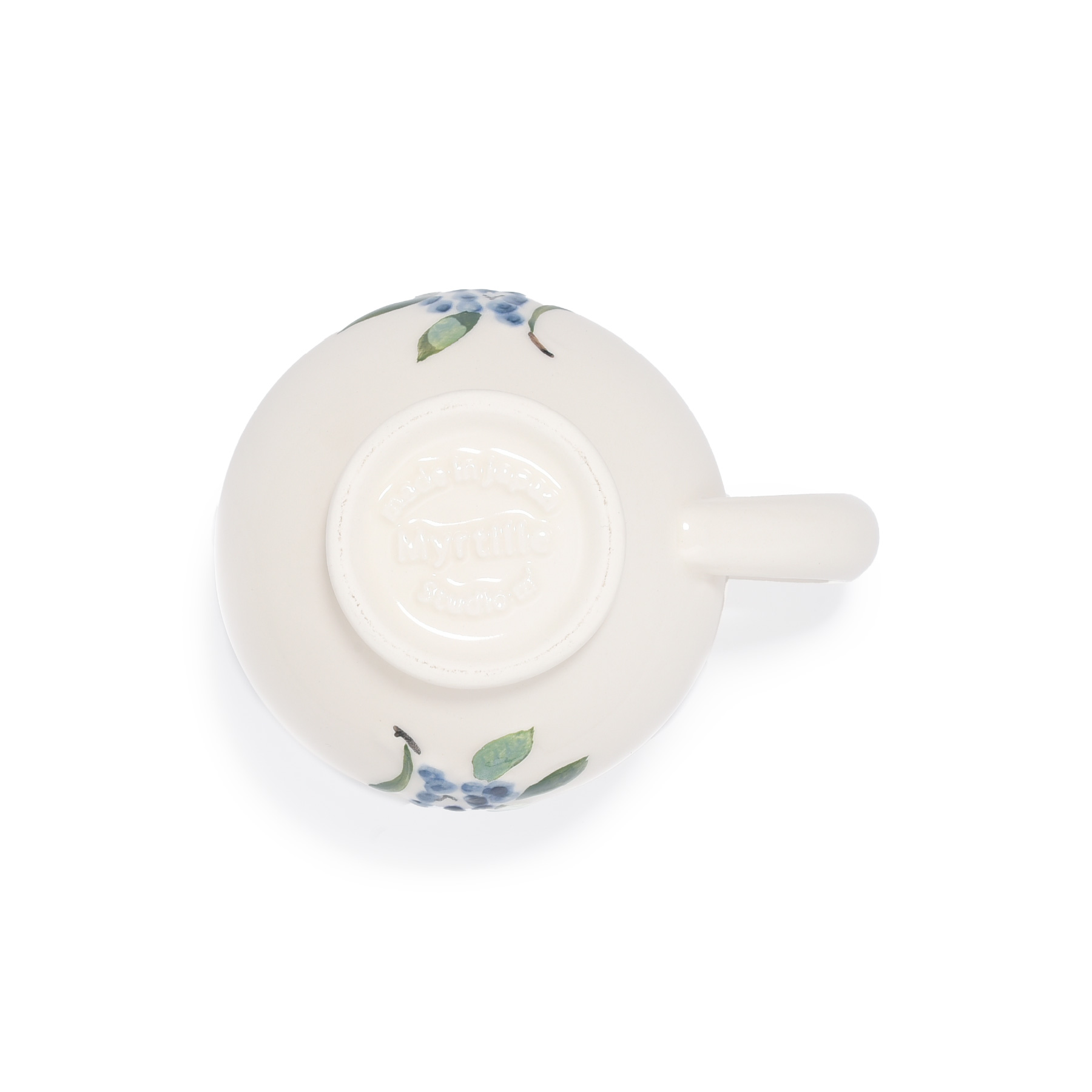 紅茶の時間を楽しむための器が揃ったミルティーユシリーズ。ミルティーユはフランス語でブルーベリー。職人の手によって、ひとつずつ丁寧に描かれた、ぷっくりと美味しそうに膨らんだブルーベリーの実と葉の絵付け装飾が、優しい雰囲気で魅力的です。半磁器素材のクリーム色がノスタルジックでより柔らかい雰囲気を醸し出しています。エレガントさがありながらも気取らない素朴さもあり、絶妙なバランスが取れているデザイン。日常の、ちょっとした贅沢なお茶の時間に使いたくなるシリーズです。