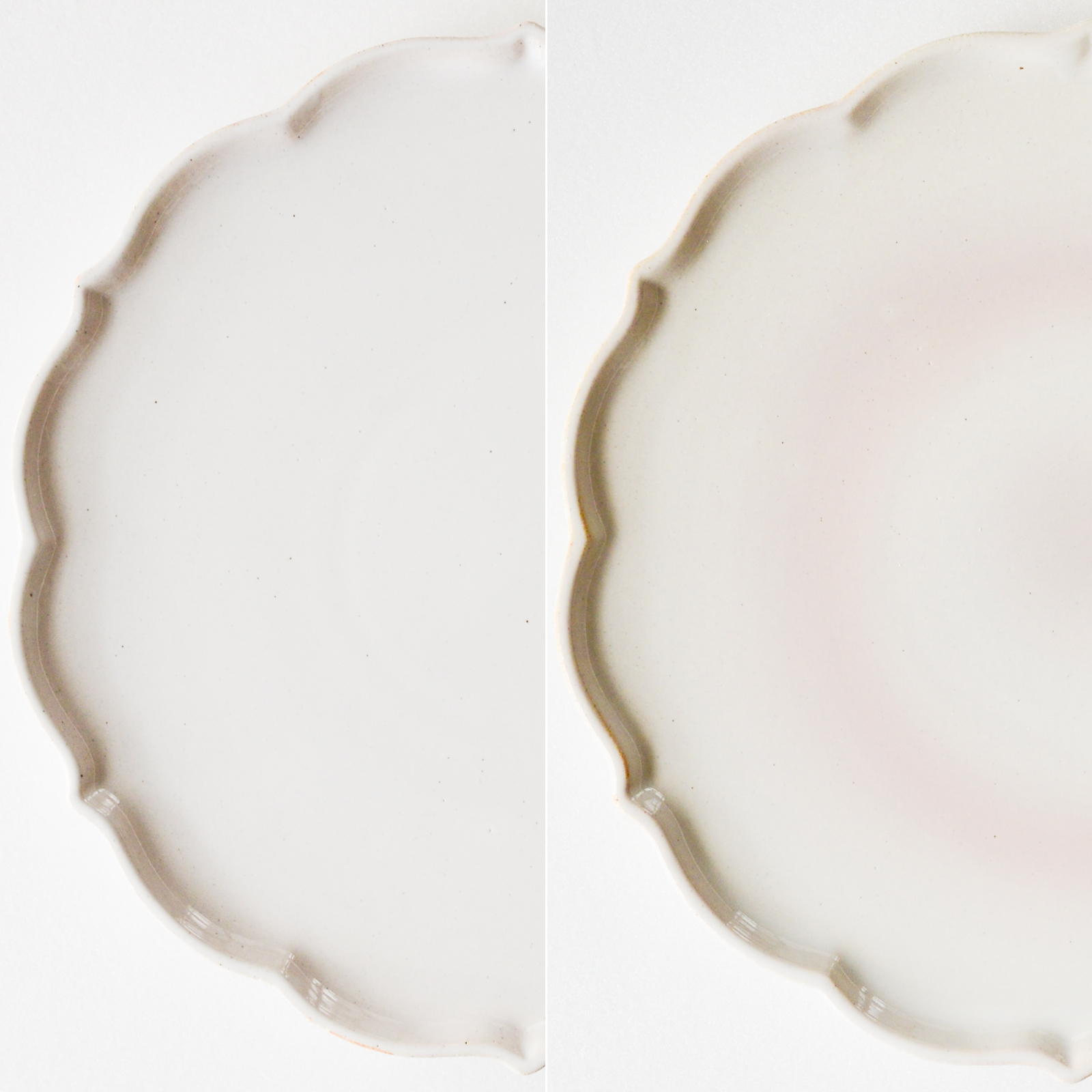 古い時代から馴染みのある稜花型をきらきらと光る雪片にみたて、冬の季語である「風花」と名付けました。伝統的な形を現代でも取り入れやすいデザインに変え、リズムのある個性的な形になるよう意識しました。額縁効果がある縁は緩急をつけ、柔らかな曲線ときゅっと引き締める部分で対比を出しました。250プレートは汎用性があり、メインプレートの他に折敷皿として組み合わせを楽しめます。おやつの時間に小皿と湯呑みを合わせたり、お正月に豆皿や小鉢を所狭しと並べた様子も可愛らしいです。200プレートは取り皿や菓子皿にちょうど良いサイズです。高台が高いのでテーブルにできる影も美しく、品があります。
