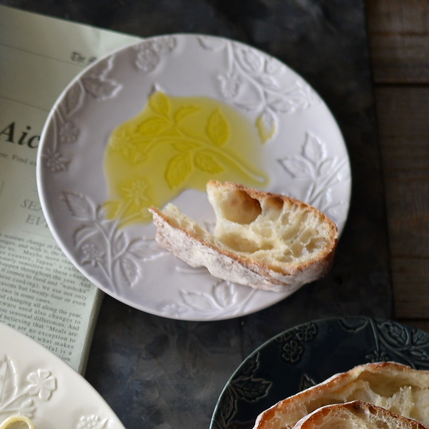 不規則に並んだフランボワーズが独特のリズムを生み出しており、大人な雰囲気で重ね使いや組み合わせなど華やかな佇まいをお楽しみいただけます。余白をイメージしてデザインし、料理を盛り付けた時にもフランボワーズや花が綺麗に見えるように工夫しました。2サイズ展開で、280プレートはメイン料理やワンプレート、ステーキやホールケーキなど。160プレートはパン皿、おやつ、取り皿として。