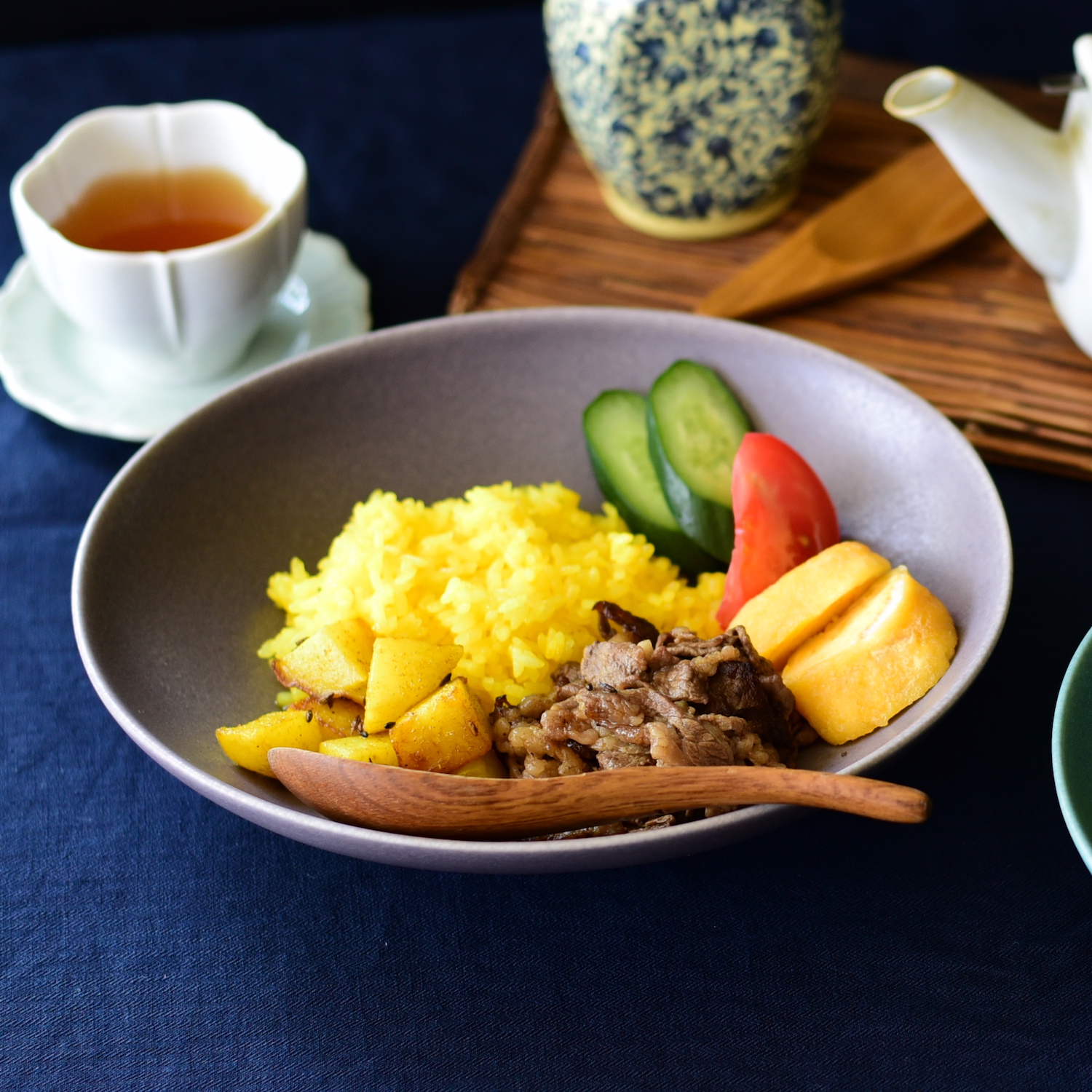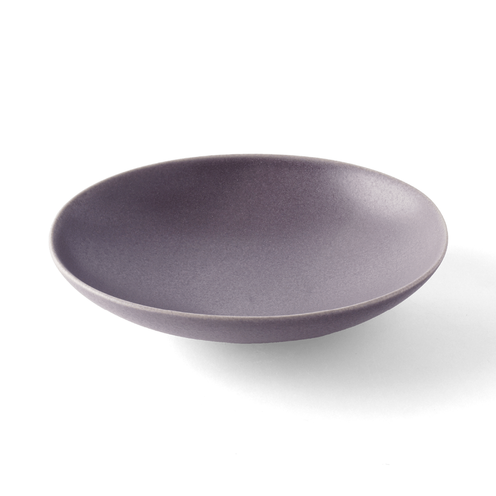 セミマットな質感と色が綺麗な釉薬が特徴の新しいパレット。スモーキーパープルとトルコグリーンは縁の色の薄い部分から、釉薬が溜まっている部分の色が濃いところまでのグラデーションが美しい色合いです。白もセミマット調にすることで奥行きのある白色になっています。230オーバルボウルは緩やかな曲面でスプーンで食べやすく、カレーや麻婆豆腐、炒飯などに。またクリームソースのパスタボウルとして、夏にはカップと合わせて麺鉢としての使い方もおすすめです。