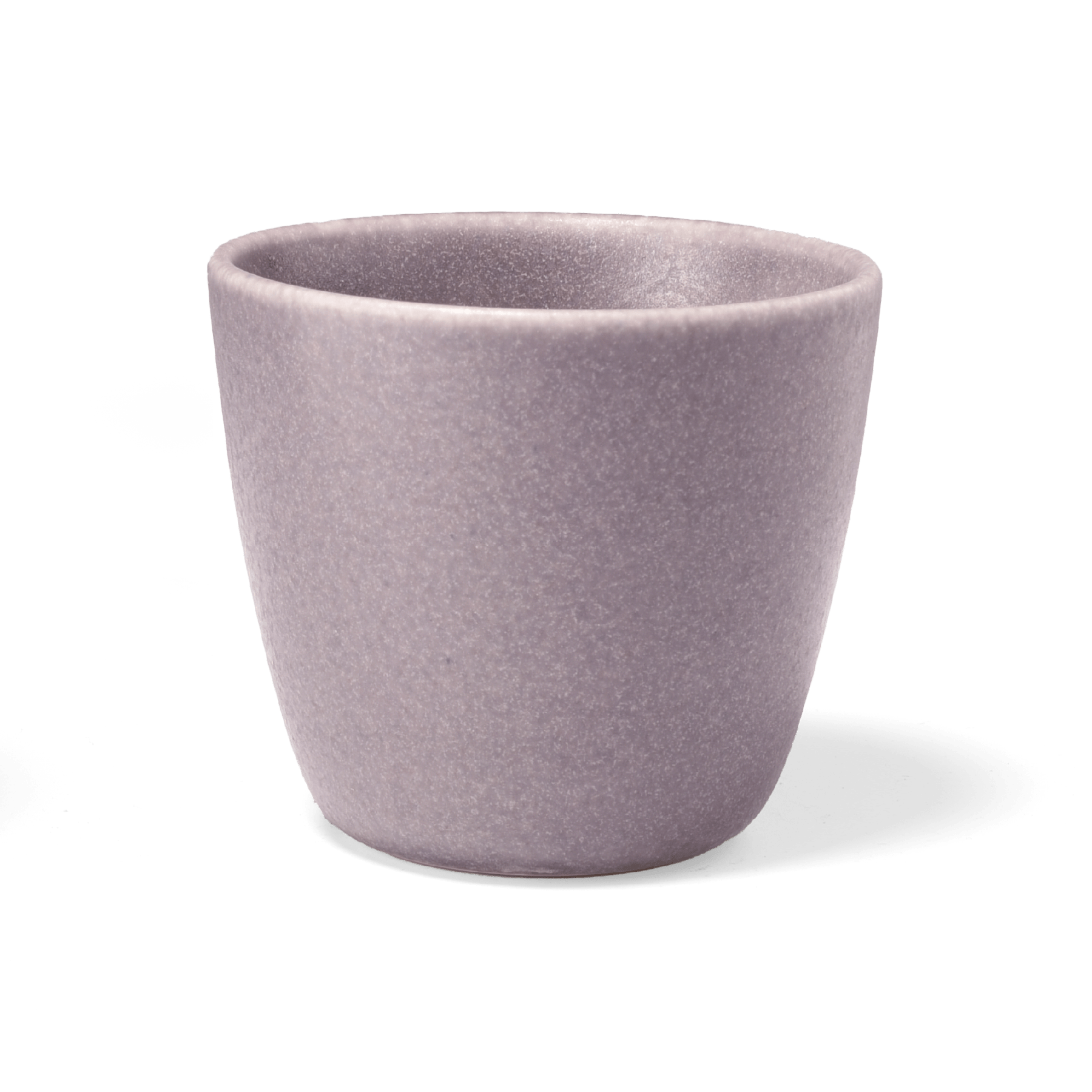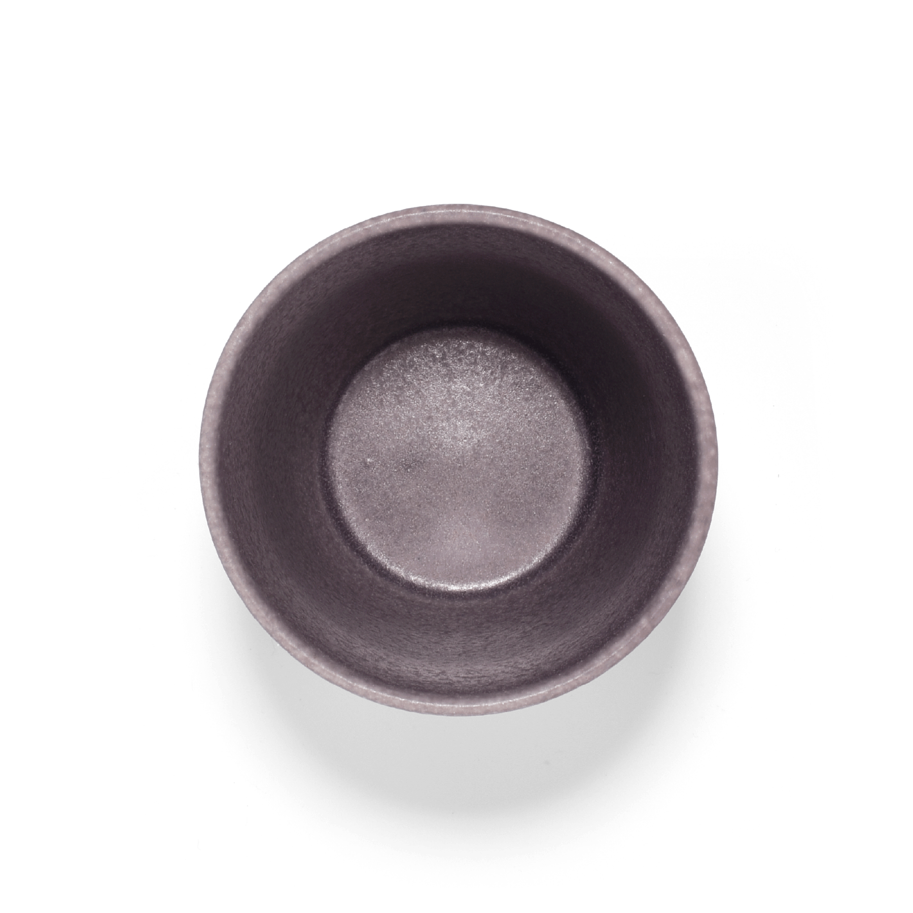 セミマットな質感と色が綺麗な釉薬が特徴の新しいパレット。スモーキーパープルとトルコグリーンは縁の色の薄い部分から、釉薬が溜まっている部分の色が濃いところまでのグラデーションが美しい色合いです。白もセミマット調にすることで奥行きのある白色になっています。ショートカップは飲み物はもちろんのこと、蕎麦猪口としてや、副菜やディップ入れにもご利用できます。
