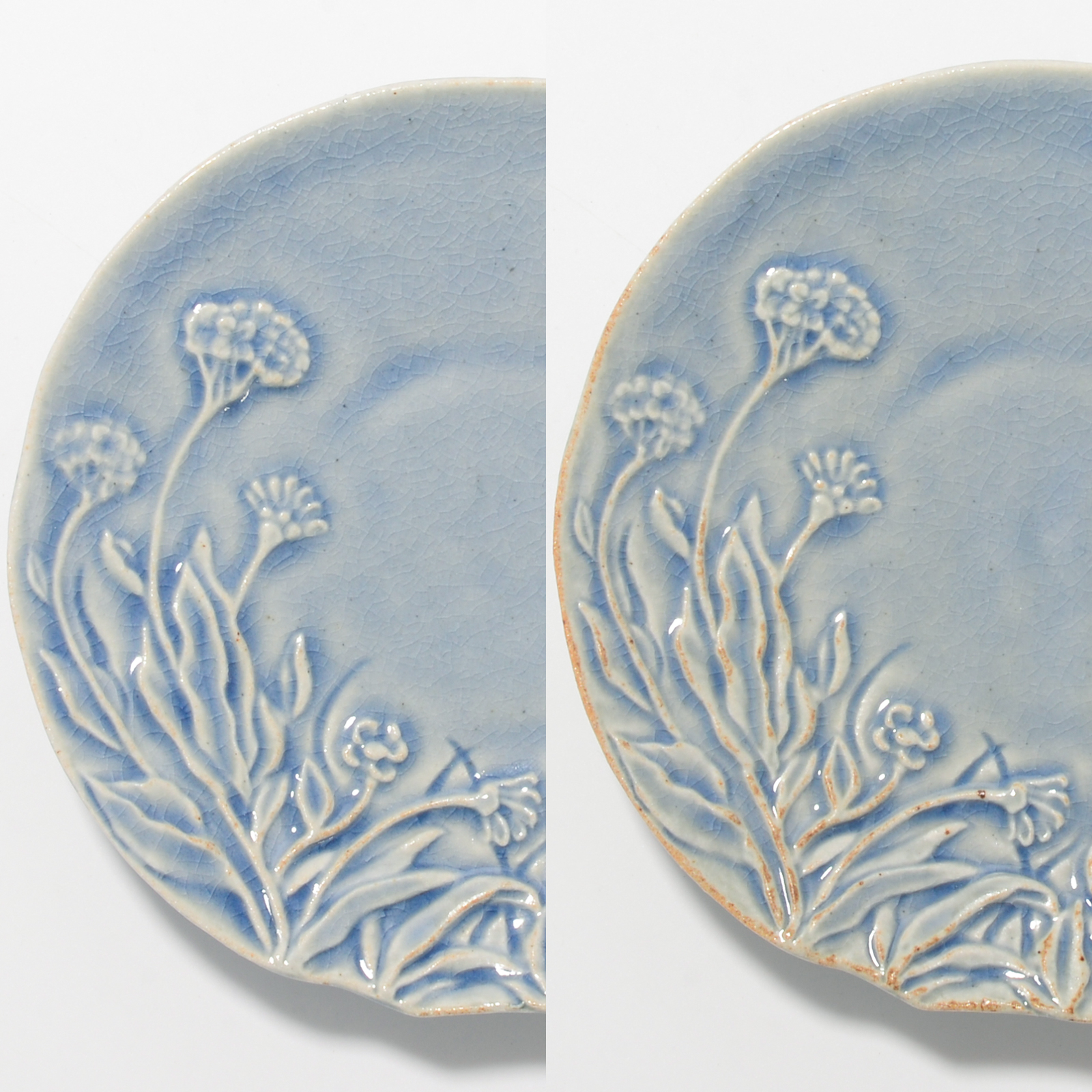 道ばたに咲く草花のたくましさや美しさ、季節の空気感を器にしたいと企画されたシリーズ。小皿は銘々皿としてだけでなく、フラットな盛り面を生かして他の器のソーサーとして用いるのもおすすめです。