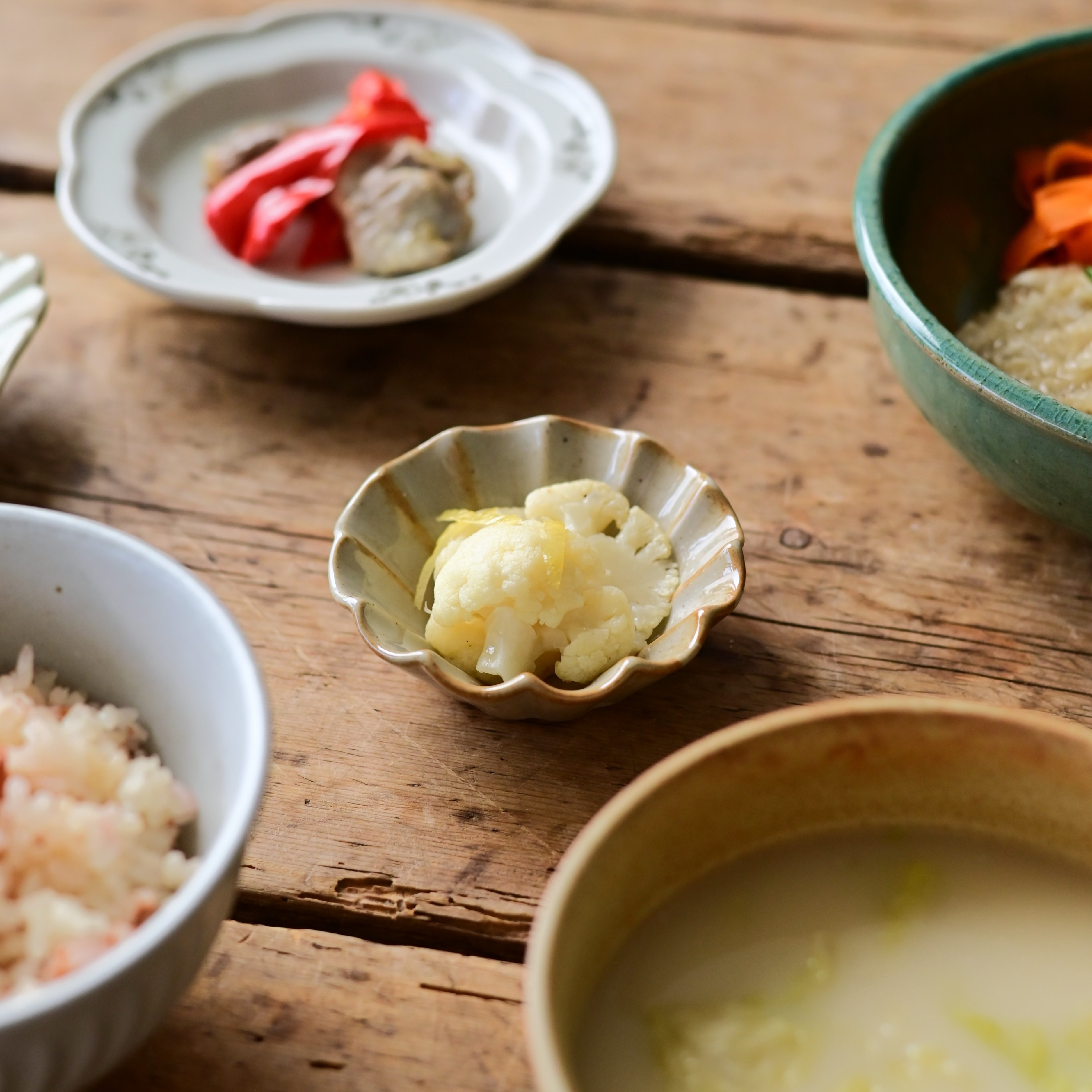 商品の色に個体差があります。季節や気温などの自然条件や、釉薬と焼成する際の火加減によって、器は様々な表情を見せます。同じ素材の器であっても、まったく同じ色に焼きあがることは非常に珍しく、100個あれば、それぞれが違った表情を見せてくれます。