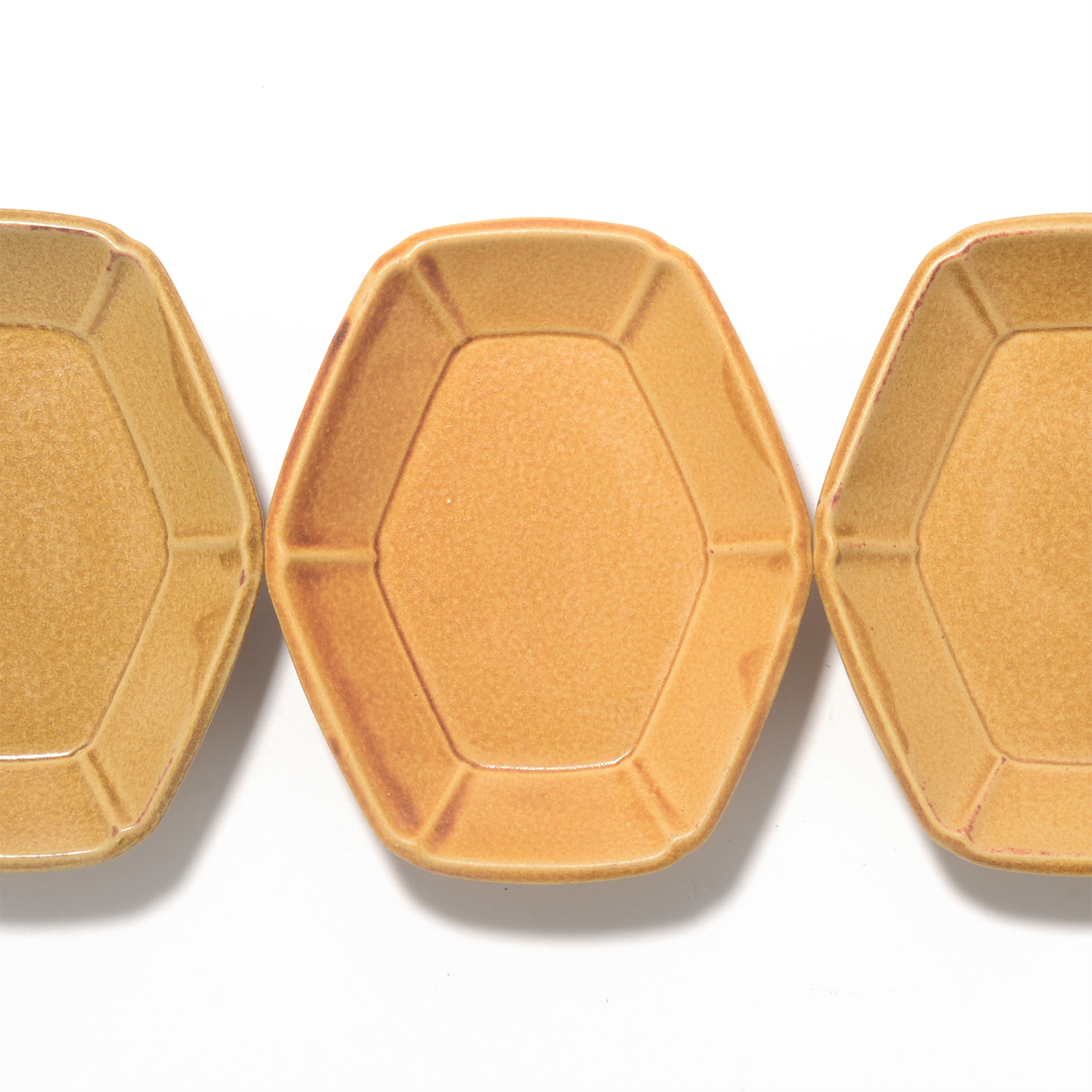 幅広いスタイルの食事に寄り添う、六角形の長角プレート。白土をベースに、左右非対称のゆらぎを取り入れたフォルムと色合いが、凛とした佇まいの中に素朴さを感じさせます。Sサイズは醤油皿や薬味皿として、またお漬物やピクルスにも使いやすいサイズです。