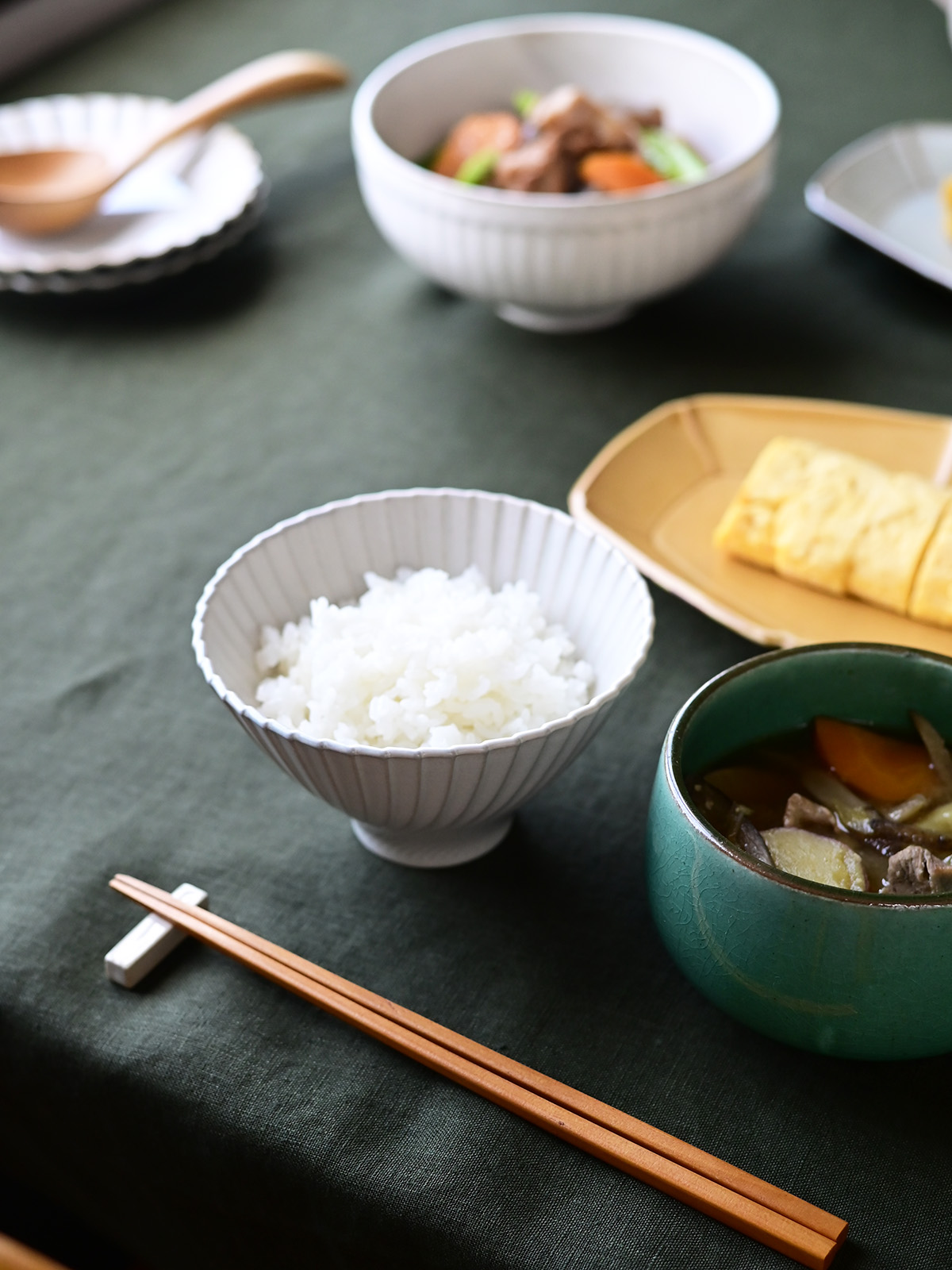 縁起のいい飯碗を、という思いから企画。ミッレはイタリア語で千、たくさんの。扇子のようなたくさんの折り目が無限に続くようなイメージで、重なった縁の装飾と曲線が見ていて飽きず、食卓をパッと華やかにしてくれる飯碗です。どの色もふんわりと霜が降りたような斑入りの釉薬を施し、奥行きのある表情を醸し出しています。
