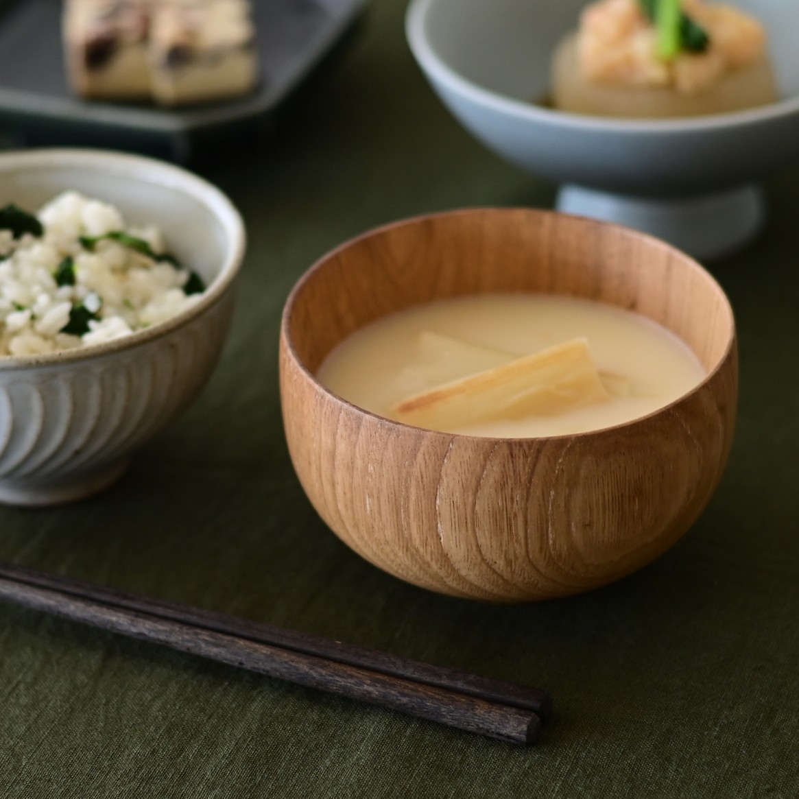 栗の木を一つひとつ丁寧にくり抜き、幾度も研磨を重ねて滑らかに仕上げた木のボウルです。手にした瞬間に感じるやわらかな質感と軽やかさが魅力で、熱が伝わりにくいため、あたたかい汁物にも安心してお使いいただけます。使うほどに木目が深みを増し、味わいが育っていくのも楽しみのひとつです。サイズはLとSの展開。Sサイズはいつもの味噌汁やポタージュスープにちょうど良い大きさ。丸くおおらかなシルエットで、少し下膨れの、胴がふっくらとした形は豊かさや安心感、親しみやすい印象を受けます。食洗機対応でお手入れも簡単な、毎日の食卓に寄り添う器です
