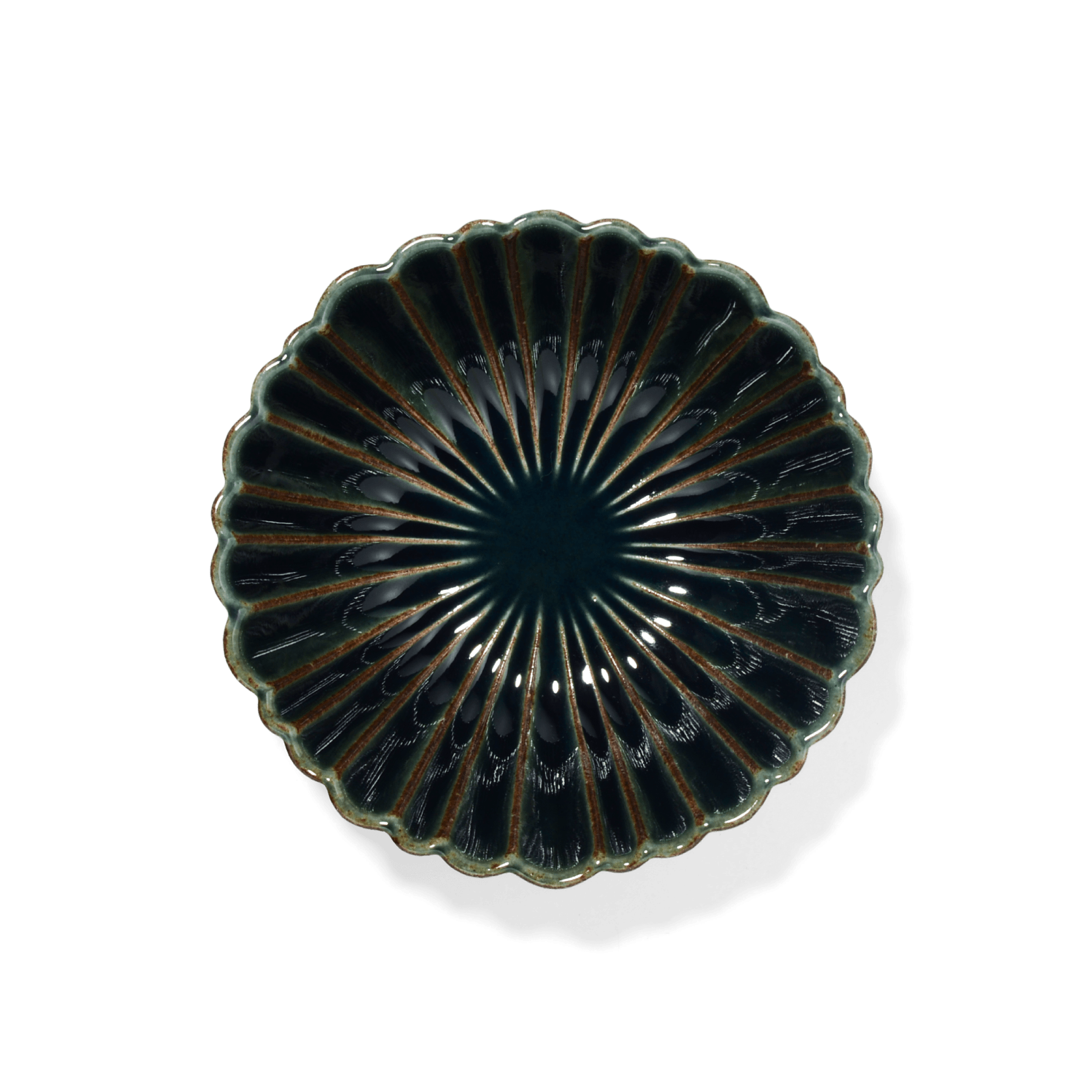 自然な動きを感じさせる、菊花型の器「ブローロ」。花びらの幅を少しずつ変え、縁をランダムに上下させて、揺らぎのあるやわらかな雰囲気を纏わせたボウルです。薄めの縁が上品さを添え、食卓に華やぎと特別感をプラスしてくれます。