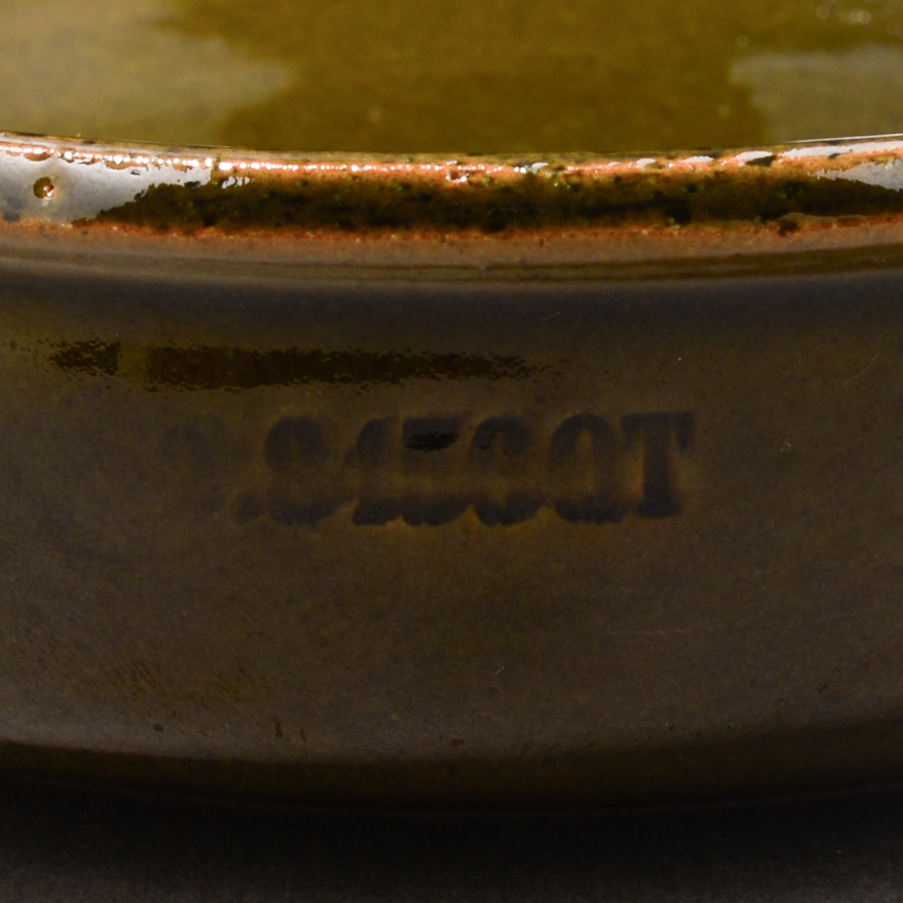 一個体の中で、釉薬や化粧土のムラがでます。1つの器の中において、色の表情が均一ではない箇所がある場合があります。器の形状などにより、釉薬の掛かり方が厚かったり、薄かったりする箇所があることが一つの要因です。それにより土の表情が一つの器のなかにおいても変化を見せます。